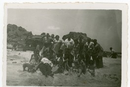 [Retrato de un grupo mixto de personas en Bahía Inglesa] [Fotografía]. Chile : [Editor no identificado] , [1940?]. 1 Fotografía : Formato digital. .