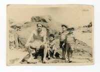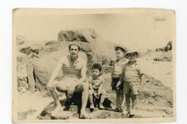 [Un adulto y tres niños de paseo en la playa] [Fotografía]. Chile : [Editor no identificado] , 1950. 1 Fotografía : Formato digital. .
