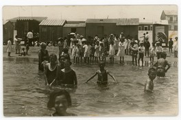 [Niños y niñas bañándose en la playa Mansa] [Fotografía]. Chile : [Editor no identificado] , 1950. 1 Fotografía : Formato digital, monocromo. .