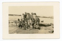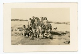 [Grupo de mujeres y niñas en la playa] [Fotografía]. Chile : [Editor no identificado] , [Fecha no identificada]. 1 Fotografía : Formato digital, monocromo. .