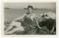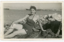 [Retratos de Dora Páez Morales en la playa] [Fotografía]. Chile : [Editor no identificado] , 1956. 3 fotografías : Formato digital, monocromo. .