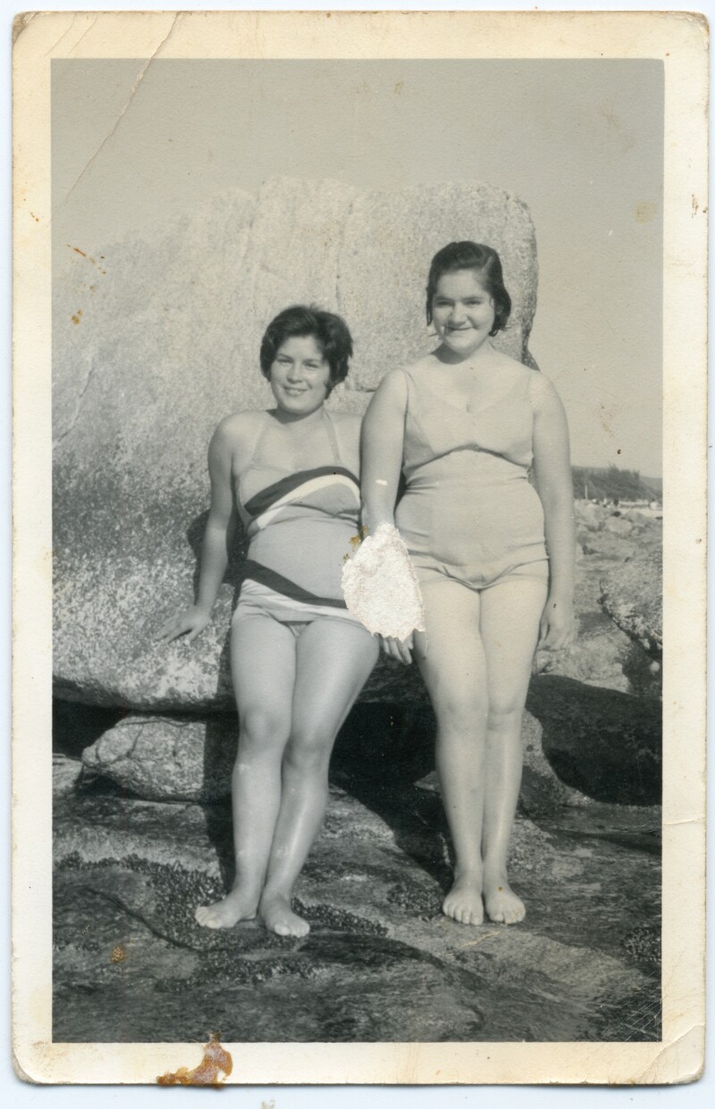 [Bernardita Oyarce y Margarita Sanchez de paseo a la playa] [Fotografía].