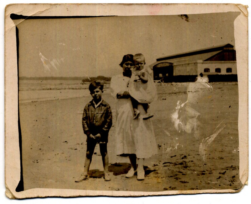 [Retrato familiar, playa de un balneario] [fotografía].