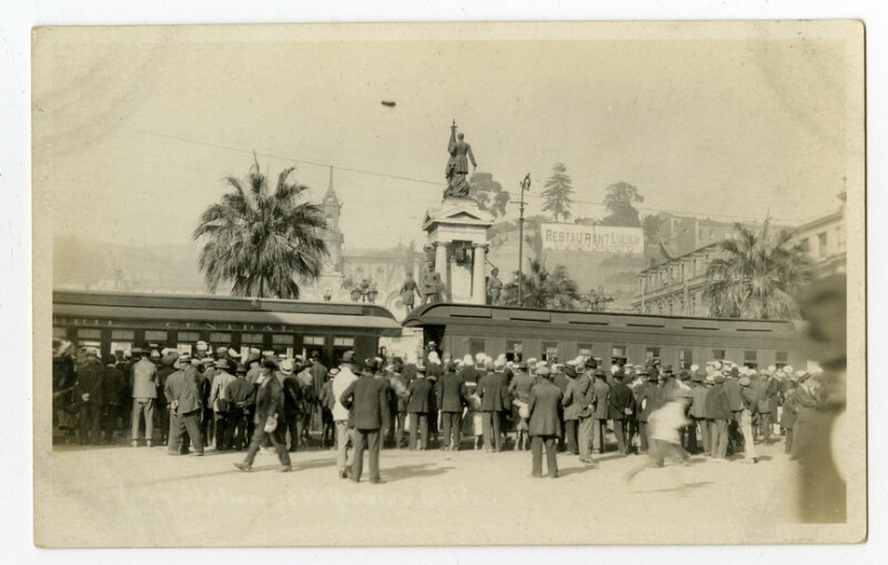 Tarjetas postales - Edificios y estructuras - Valparaiso (Chile : Ciudad) - Historia - Fotografías - Arquitectura - Ferrocarriles - Estaciones de ferrocarril - Ferrocarril de Valparaíso a Santiago (Chile) - Wolfe, J. L.
