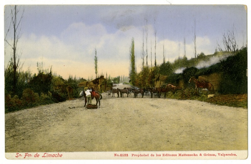 Villas y aldeas - Grimm, Juan - Mattensohn, Guillermo - Historia - Tarjetas postales - Limache (Chile) - Campesinos - Caballos