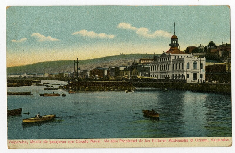 Historia - Fotografías - Arquitectura - Tarjetas postales - Urbanismo - Muelle Fiscal (Puerto de Valparaíso) - Puerto de Valparaíso Chile - Círculo Naval (Valparaíso, Chile) - Grimm, Juan - Club Naval (Valparaíso, Chile) - Viña Errázuriz Panquehue (Chile) - Mattensohn, Guillermo - Valparaiso (Chile : Ciudad)