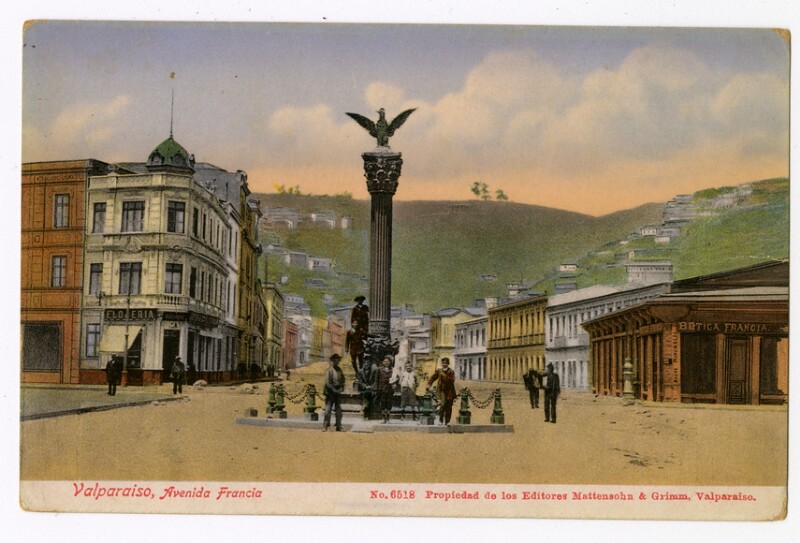 Tarjetas postales - Puerto de Valparaíso (Chile) - Grimm, Juan - Monumento del Aguila (Valparaíso, Chile) - Avenida Francia (Valparaíso, Chile) - Mattensohn, Guillermo - Valparaiso (Chile : Ciudad) - Historia - Fotografías - Arquitectura - Comercio - Urbanismo