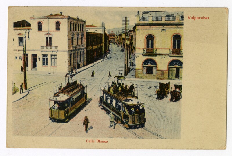 Calle Blanco (Valparaíso, Chile) - Weinreich Kirsinger, Reinaldo - Kirsinger, Carlos - Valparaiso (Chile : Ciudad) - Historia - Fotografías - Tarjetas postales - Urbanismo - Puerto de Valparaíso (Chile) - Tranvías
