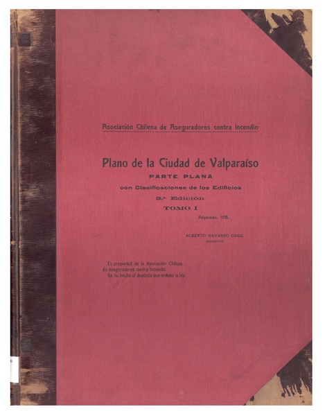 Plano de la ciudad de Valparaíso parte plana con clasificación de los edificios : tomo I [material cartográfico] : Asociación Chilena de Aseguradores contra Incendio; Alberto Navarro Cruz, inspector.