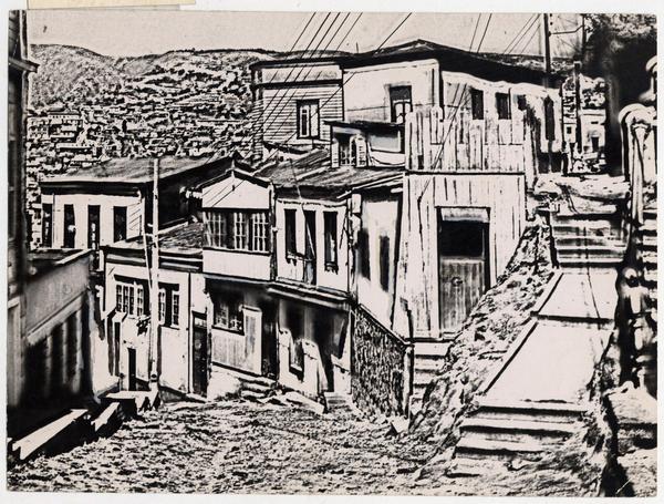 Valparaíso en alto contraste simulando grabado en madera [fotografía] Domingo Ulloa.