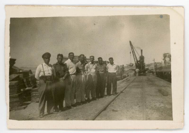 [Retrato grupal de trabajadores en el muelle de Caldera] [Fotografía].