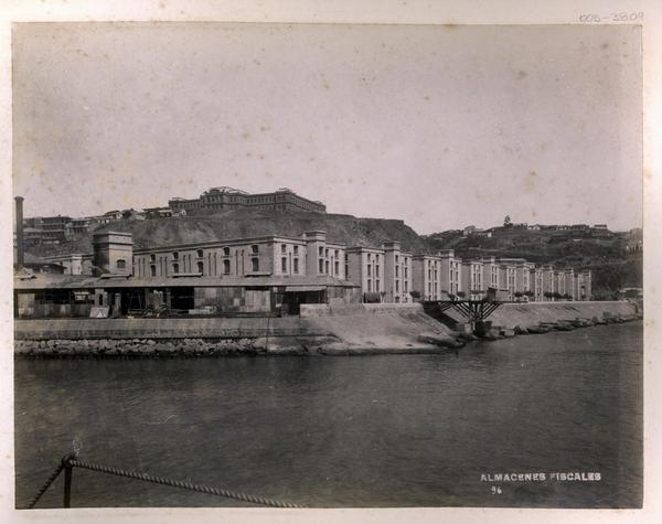 [Edificio : Almacenes Fiscales de Valparaíso, vista del mar y cerros] [fotografía] Fotografía Leblanc.