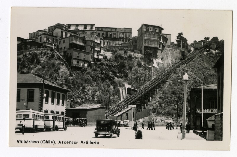 Historia - Fotografías - Arquitectura - Transporte urbano - Tarjetas postales - Ascensores - Urbanismo - Automóviles antiguos y clásicos - Cerro Artillería (Valparaíso, Chile) - Compañía de Ascensores Mecánicos de Valparaíso (Chile) - Servicios de transporte público no tradicionales - Frigoríficos - Valparaiso (Chile : Ciudad)
