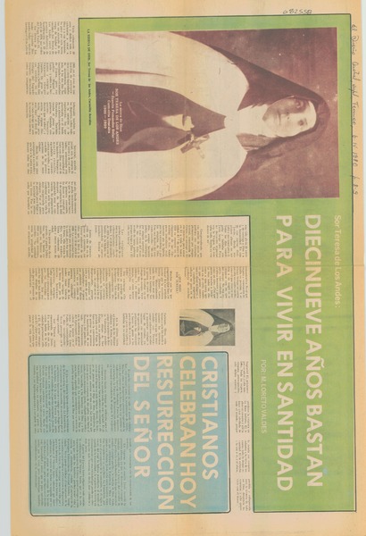 Hoy cumpliría 80 años Sor Teresa de Los Andes [artículo] Marino Purroy.