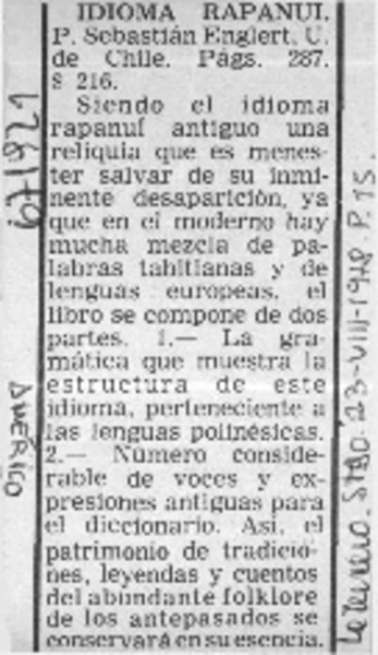 Autores alemanes - Idioma Rapanui - Englert, Sebastián