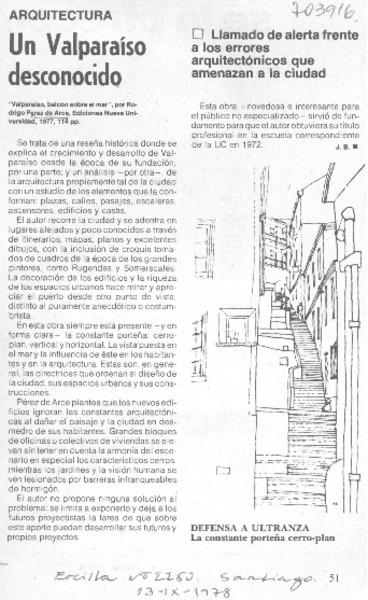 Autores chilenos - Pérez de Arce, Rodrigo - Valparaíso, balcon sobre el mar