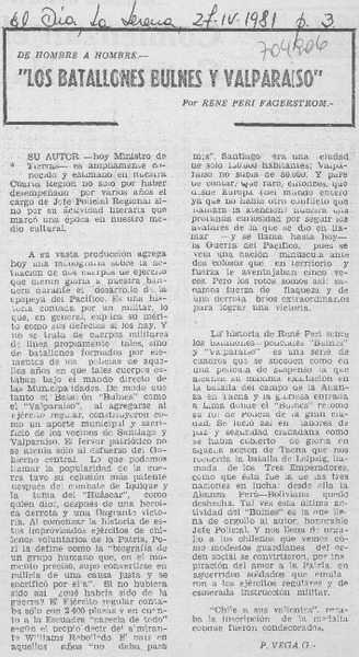 Autores chilenos - Peri Fagerstrom, René - Batallones Bulnes y Valparaíso