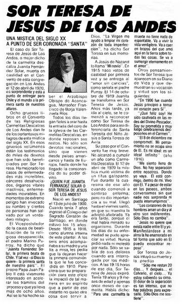 Sor Teresa de Los Andes a un paso de la beatificación. [artículo]