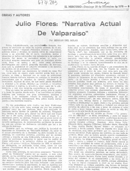 Julio Flores, "narrativa actual de Valparaíso" [artículo] Hernán del Solar.