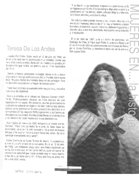 Autores chilenos - Teresa Jesús de los Andes, Santa