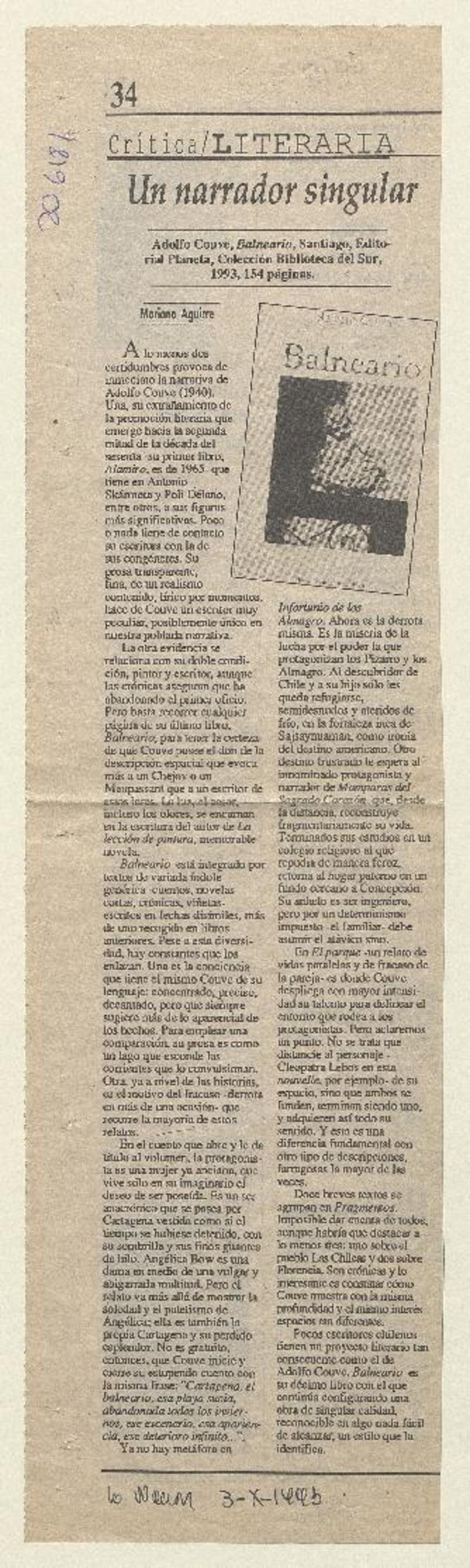 Adolfo Couve, "Balneario" [artículo] Carlos Jorquera Alvarez.