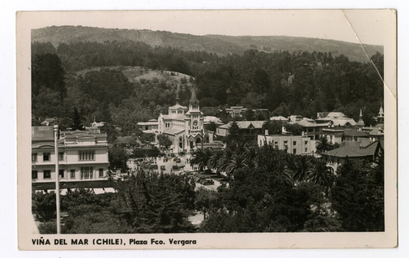 Historia - Fotografías - Arquitectura - Viña del Mar (Chile) - Tarjetas postales - Arquitectura del paisaje - Balnearios costeros - Automóviles antiguos y clásicos - Calesas - Parroquia Nuestra Señora de los Dolores (Viña del Mar, Chile) - Vergara Echevers, José Francisco - Plaza José Francisco Vergara (Viña del Mar, Chile) - Ekin, Winnie