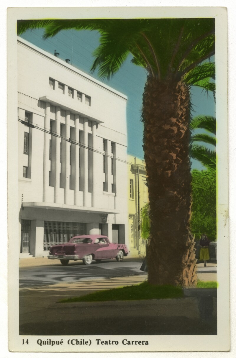 Arquitectos - Barison Desman, Arnaldo - Teatro Carrera (Quilpué, Chile) - Historia - Fotografías - Quilpué (Chile) - Tarjetas postales - Urbanismo - Arquitectura de teatros - Automóviles