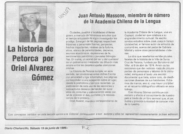 La historia de Petorca por Oriel Alvarez Gómez [artículo] Juan Antonio Massone