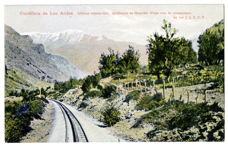 Cordillera de los Andes - Ingeniería estructural - Ferrocarril Trasandino Chileno - Guardia Vieja (Los Andes, Chile) - Weinreich Kirsinger, Reinaldo - Historia - Fotografías - Los Andes (Chile) - Vegetación - Tarjetas postales