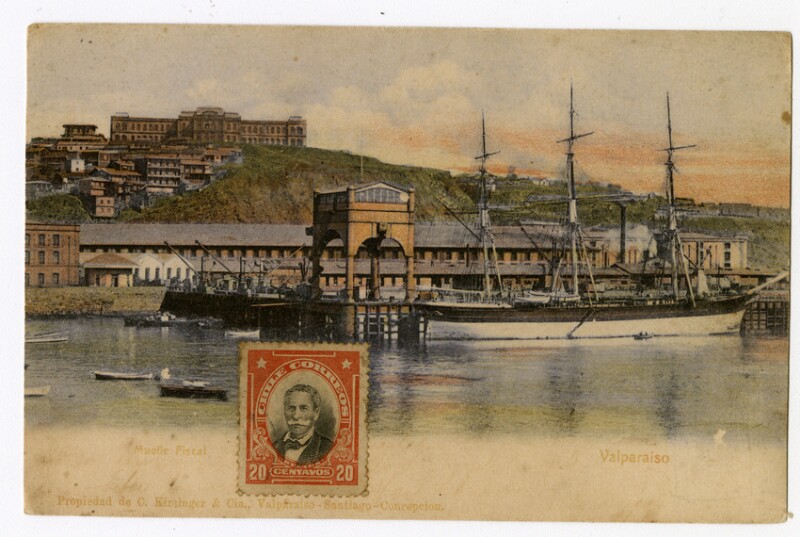 Exposiciones - Muelle Fiscal (Puerto de Valparaíso) - Puerto de Valparaíso Chile - Moltke, Carlos von - Museo Naval y Marítimo (Valparaíso, Chile) - Weinreich Kirsinger, Reinaldo - Valparaiso (Chile : Ciudad) - Kirsinger, Carlos - Historia - Fotografías - Arquitectura - Tarjetas postales