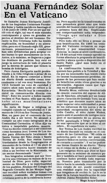 Juana Fernández Solar en el Vaticano [artículo] Hugo Araya Guzmán.
