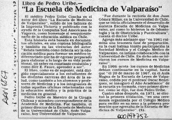 "La Escuela de Medicina de Valparaíso" [artículo] S.