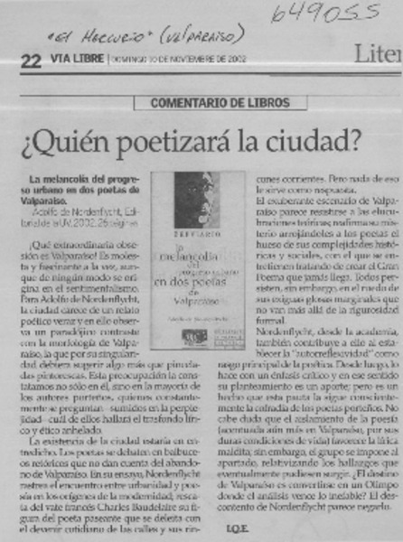 Autores chilenos - Nordenflycht Bresky, Adolfo de - Melancolía del progreso urbano en dos poetas de Valparaíso