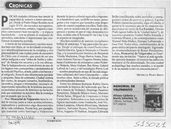Memorial de Valparaíso [artículo] Michelle Prain Brice