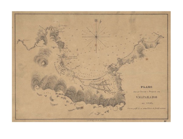 Plano de la ciudad i puerto de Valparaíso en 1835 con un perfil de su actual línea de fortificaciones. [material cartográfico] :