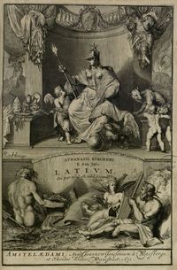 Latium, id est, Nova & parallela latii tum veteris tum novi descriptio : qua quæcunque vel natura, vel veterum Romanorum ingenium admiranda efficit, Geographico-Historico-Physico ratiocinio, juxta rerum gestarum temporumque seriem exponitur et enucleatur / Athanasii Kircheri. Amstelodami : Apud Joannem Janssonium à Waesberge & Hæredes Elizei Weyerstraet, 1671. [18], 263 páginas, [15] hojas de láminas (algunas plegables) : mapas, planos ; 39 cm .