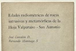 Edades radiométricas de rocas intrusivas y metamórficas de la hoja Valparaíso-San Antonio / José Corvalán Díaz, Fernando Munizaga S. Santiago, Chile : Instituto de Investigaciones Geológicas, 1972 (Santiago de Chile : Editorial Universitaria) 40 páginas : ilustraciones ; 23 cm. + 1 mapa (color; 55 x 65 cm.) .
