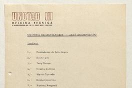 Memoria de mantención - arte incorporado [manuscrito] / Eduardo Martínez Bonata. [Santiago, 1972] 4 hojas : mecanografiado ; 33 x 22 cm. .