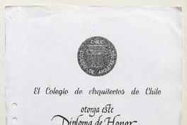 Copia de diploma entregado a los arquitectos del edificio UNCTAD por el Colegio de Arquitectos de Chile. Incluye en extremo superior membrete del Colegio.