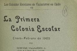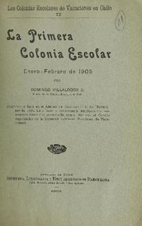 La primera colonia escolar / Domingo Villalobos B. Santiago : Imprenta, Litografía i EncuadernaciónBarcelona, 1905. 28 páginas ; 25 cm. .