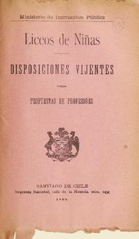 Liceos de Niñas : disposiciones vijentes sobre propuestas de profesores / Ministerio de Instrucción Pública. Santiago de Chile : Imprenta Nacional, 1908. 10 páginas ; 23 cm. .