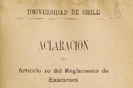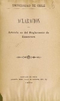 Aclaración del articulo 10 del reglamento de exámenes Santiago : Imprenta Mejía, 1902. 6 páginas ; 25 cm. .