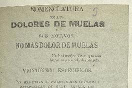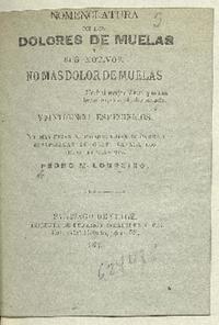 Nomenclatura de los dolores de muelas y sus motivos / Pedro M. Loureiro. Santiago : Imprenta de Federico Schrebler, 1877. 19 páginas. .