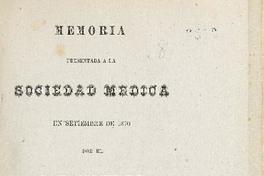Memoria presentada a la Sociedad Médica en Septiembre de 1876 por el Dr. R. Allende P.
