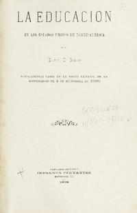 La educación en los Estados Unidos de Norte-América : conferencia leída en el Salón Central de la Universidad el 4 de septiembre de 1908 / Dario Salas. Santiago : Imprenta Cervantes, 1909. 93 páginas ; 23 cm. .