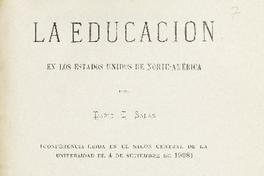 La educación en los Estados Unidos de Norte-América : conferencia leída en el Salón Central de la Universidad el 4 de septiembre de 1908 Dario Salas.