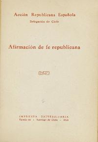 Afirmación de fe repúblicana / Acción Repúblicana Española. Santiago : Universitaria, 1942. 35 p. 19 cm. .
