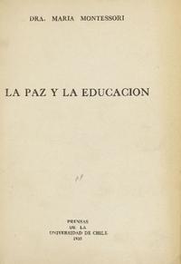 La Paz y la educación / María Montessori ; traducción de Aída Larraguibel M. [Santiago, Chile ] : Prensas de la Universidad de Chile, 1935. 27 páginas ; 19 cm. .