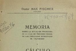 Memoria sobre la situación financiera de la Caja de Previsión Social de los Empleados Municipales de Valparaíso y cálculo de los recursos y del costo de los beneficios de acuerdo con los establecido en los estatutos de fecha 26 de marzo de 1929.