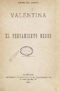 Valentina y el pensamiento negro / Rufino del Canto. Santiago : Imprenta Victoria, 1884. 73 páginas ; 27 cm. .